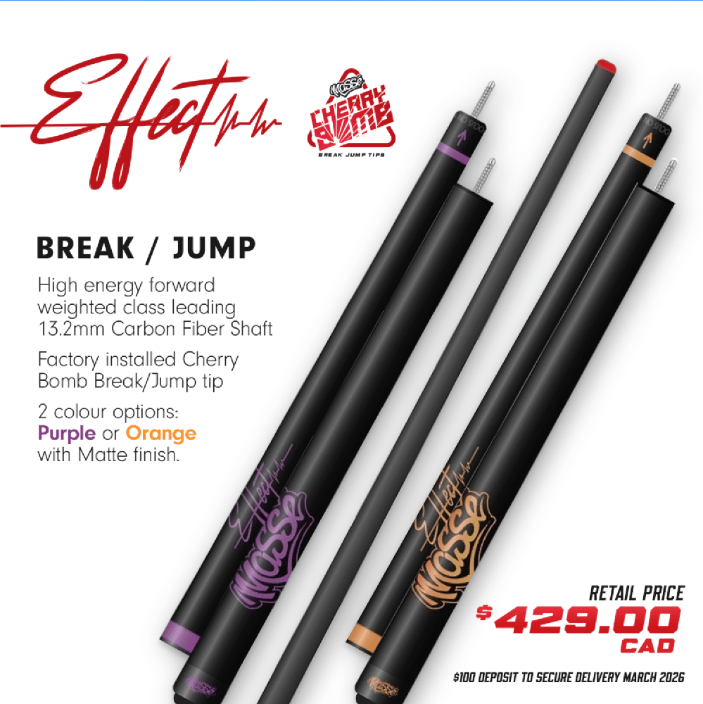 - Massé Cherry Bomb break jump tip for maximum pop and incredible grip for maximum spin